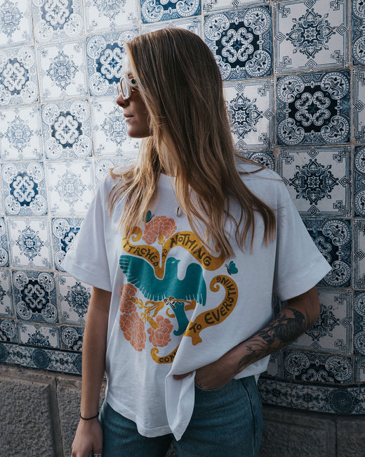 Fair fashion comes from conscious production. Let your inner hippie fly and enjoy the freedom this loose fitting tee gives you.